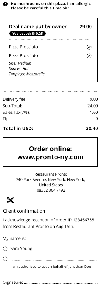 The device will notify you every time you get a new order, giving you 3 minutes to review and confirm the order or set for automatic approval. So, your customers will know exactly when you’ve accepted it.