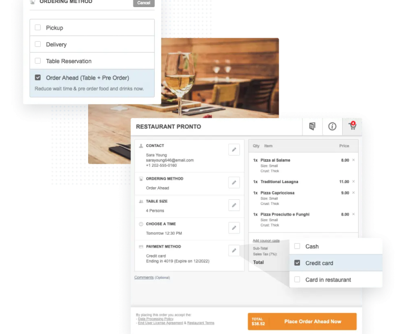 With our Order Ahead+Table Reservation feature, your hungry customers can easily book a table & pre-order their favorite dishes.