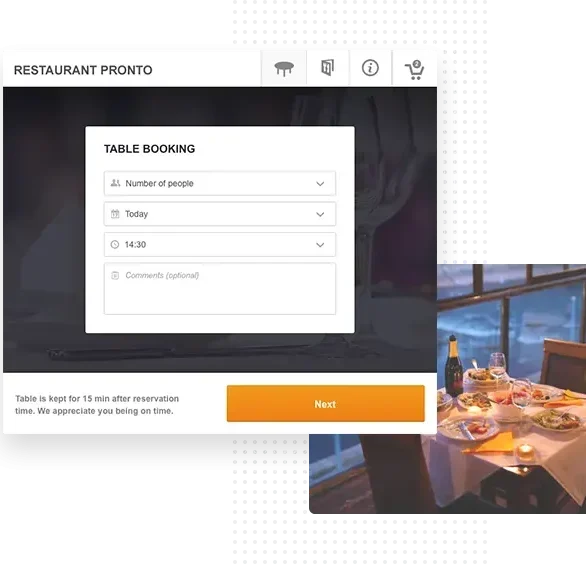 Our order taking app doubles as an app for accepting your table bookings.