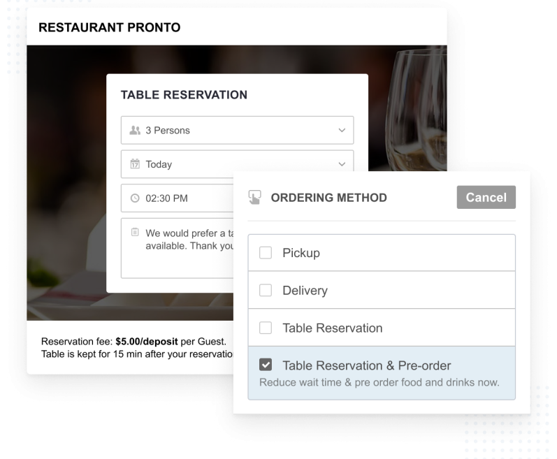 Reduce table & meal wait time by enabling guests to pre-order when they make a reservation